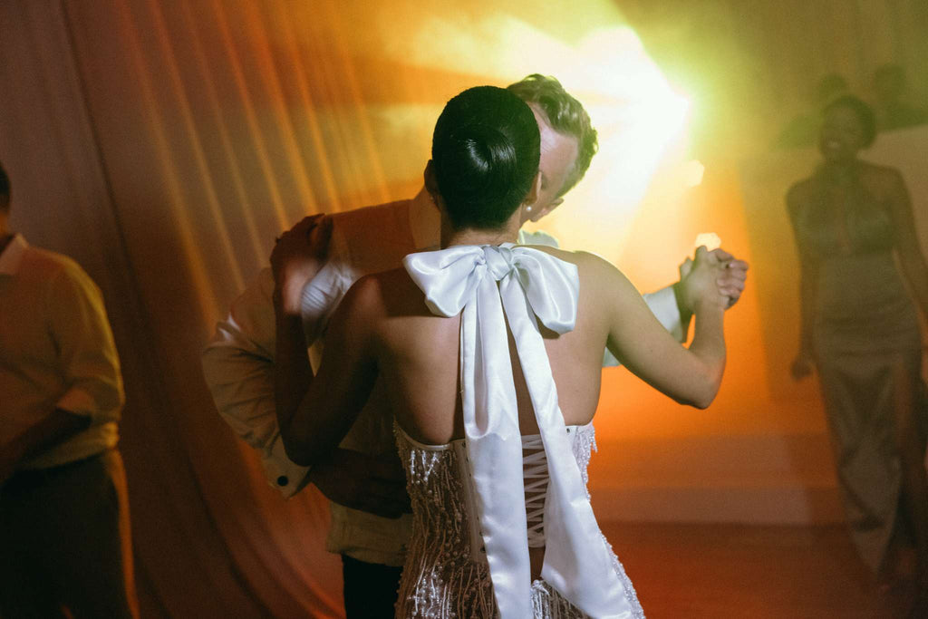Natasha is an exquisite reception dress designed for timeless elegance and undeniable presence. Featuring a sculpted satin corset with a softly draped neckline, this design enhances the waist while beautifully framing the décolletage with refined structure.